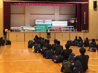 修学旅行1日目 公開日 2021/10/23 更新日 2021/10/23 できごと 体育館に集合し、修学旅行実行委員の司会で出発式を行いました。 校長先生のお話の後、実行委員の代表からも挨拶と諸注意がありました。 いいね(0)