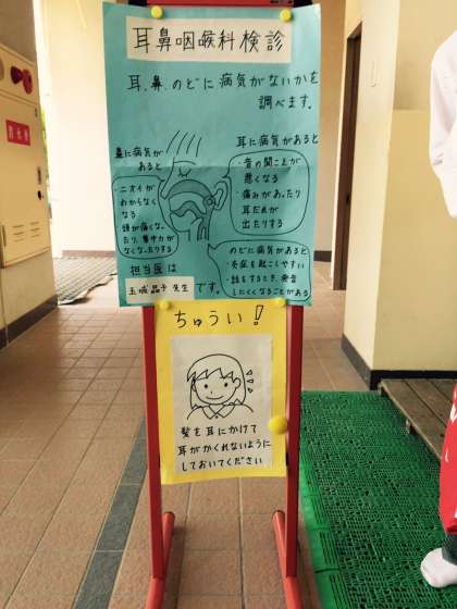 先日の内科検診・聴力検査に引き続き、昨日は校医の先生に来てもらい、保健室で耳鼻科検診が行われました。
