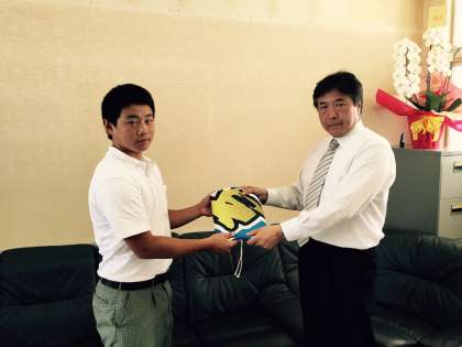 今日のお昼休みに、ラグビー部キャプテンの松山君が大池中応援旗を取りに来てくれました。