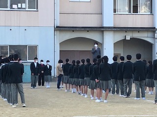 ますは、明日合唱コンクールの学年発表があり、木曜日に合唱コンクールがあります。練習では徐々に大きな声が聞こえてくるようになりました。本番までの準備は少ない時間しかありませんが、しっかり練習して本番を迎えてください。まずは、明日の学年発表。学年発表には、保護者の方も見に来られます。練習を通じてクラスで心を合わせて、心のこもった合唱にしましょう。