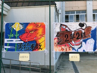 今年の学級旗の最優秀賞は2年3組、優秀賞は2年2組でした。