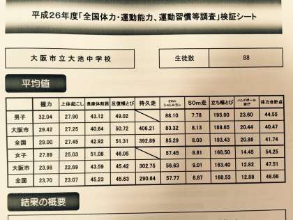本校の昨年度の「全国体力・運動能力、運動習慣等調査」結果を!!