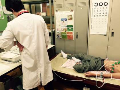 といっても、検診業者の方が来られて、一人ひとりの心電図をとります。