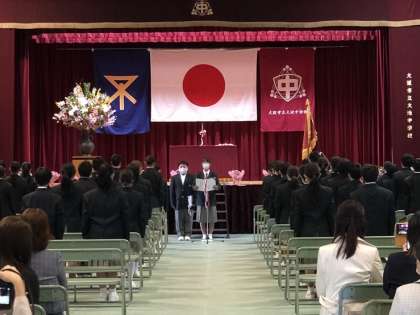 4月8日(金)桜の花の中、64名が大池中学校に入学しました。しっかりと話を聞いている姿はとても立派でした。1日も早く中学校生活に慣れて、自分の力を発揮して欲しいです。これからがとても楽しみです。