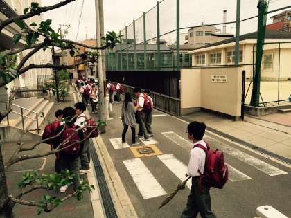 こちらは1年生、1年生も昨日までの一泊移住が無事終わり、3年同様健康観察に9時から登校です。体育館でお話があり、その後元気に下校していきました。