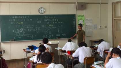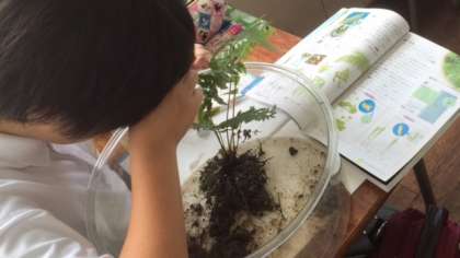 1年生の理科の授業の様子です。今日は、シダ植物について観察し、その特徴を捉える学習でした。ちなみに、教頭先生は理科が大好きです。