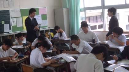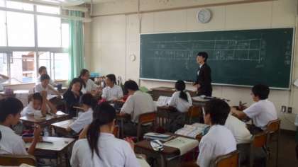 教育実習生の授業を、他の実習生も入って、互いに研鑽し、技術を身につけています。頑張って来春から教壇に立ってほしいと思います。