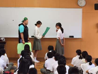 1年学年集会 公開日 2015/06/16 更新日 2015/06/16 お知らせ 画像は先週の1年の学年集会です。 最初に教育実習の先生から、自分の人生を振り返り、先輩として皆に伝えたいことが話され、その後、この学年が一泊移住に「びわ湖青少年の家」に行った際、各分野で頑ったクラスに賞状が手渡されました。 いいね(0)