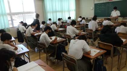 テスト実施の教科が多いので、生徒たちは大変です。今までの学習の成果を少しでも発揮して欲しいです。これは、1年生の頑張っている様子です。