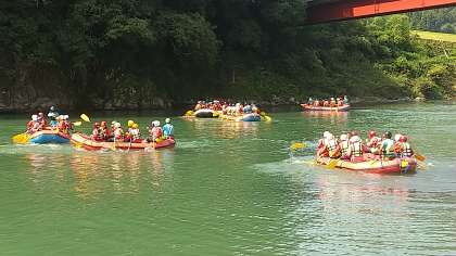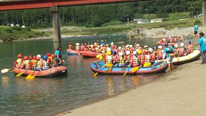 ラフティングが始まりました。かなり暑いので、よいコンディションです。