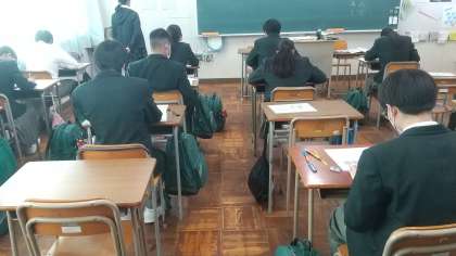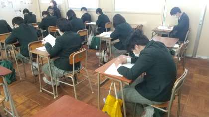 1月25日は、最強寒波の中、生徒たちは、校内テスト最後となるので、真剣に取り組んでいました。先週から続くインフルエンザなどのかぜの影響で全員の体調が万全でない中ですが、いい結果が出ることを期待したいです。
