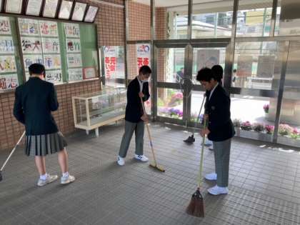 生徒会役員のみなさんは朝の玄関を掃除してくれています。