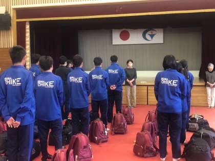 2号車は明宝コミュニティセンターで離村式を行いました。