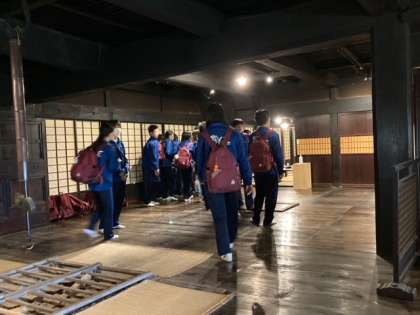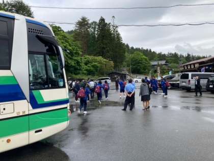 3年生修学旅行一行は、予定通り飛騨の里に到着しました。 これから、ものづくり体験です。