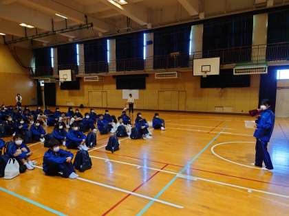 2年生は無事に校外学習の出発式を終え、学校を出発しました。