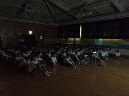 今日の6時間目、格技室で三年生が体育大会三年プログラム『組体操』の先輩の演技をビデオ視聴しました。