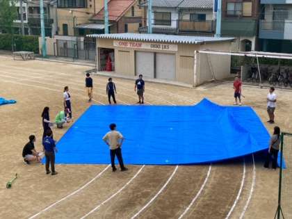 6月8日 体育大会に向けて 公開日 2023/06/08 更新日 2023/06/08 お知らせ 今夜の雨に備えて、教職員が明日の体育大会実施に向けた準備をしています。 運動場の水たまりができやすい部分を、シートで覆っています。 良い大会ができますように・・・ いいね(0)