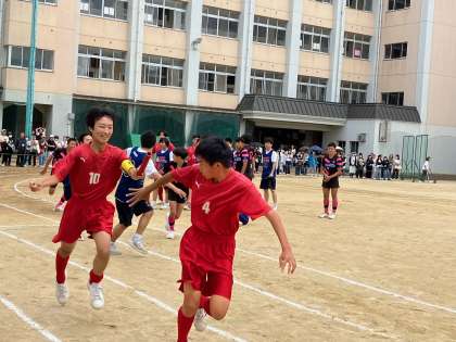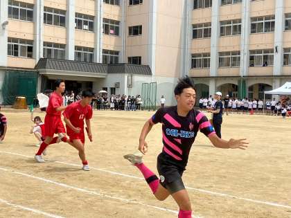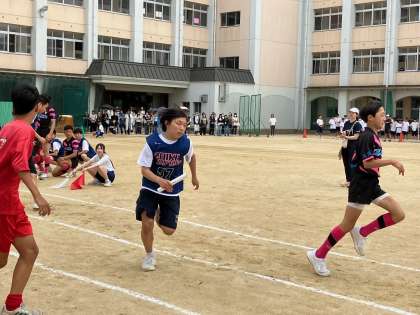 運動部男子のリレーは接戦で、応援の声もさらに力が入りました。「楽しい!」「楽しい!」の声が聞こえてきます。