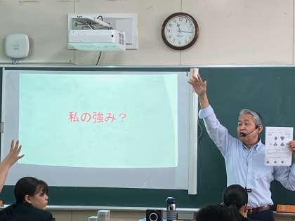 2年生 進路学習(SPトランプ ) 公開日 2023/06/15 更新日 2023/06/15 お知らせ 2年生は、3時間目・4時間目に講師の先生をお招きして、SP(サブ パーソナリティ)トランプを活用した楽しい体験型セミナーを行いました。 自分に近い性格のトランプカードを選ぶうちにいろいろな自分に気づいていきました。「自分の性格にあった仕事ってどんなの?」と講師の先生の解説を聞きながら、大変盛りあがっていました。 いいね(0)
