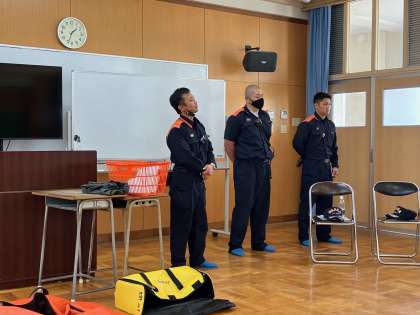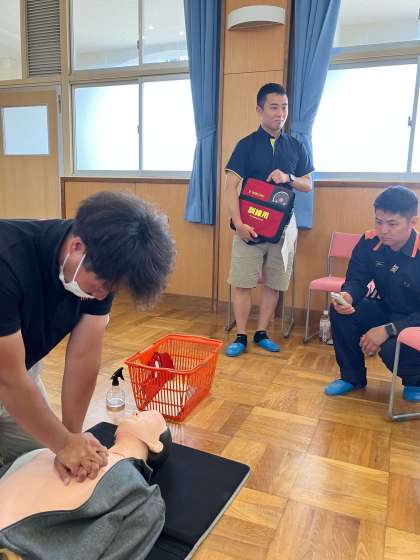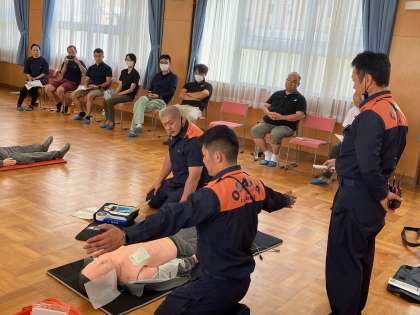 本日は、生野消防署の方に来ていただき、本校の教職員のみなさんは救急救命の講習を受けました。AEDを使用した心肺蘇生法を説明を聞きながら、一人ひとり手順通りにやってみました。いつでも、どこでも、尊い命を救うために、勇気ある1歩を踏み出せる人であってくださいと消防署の方がお話されました。
