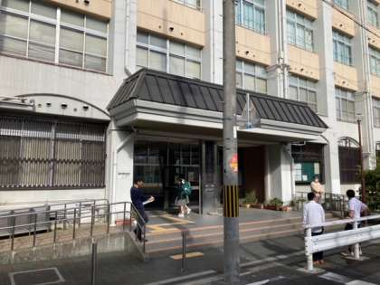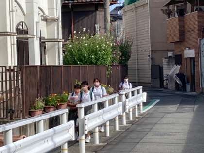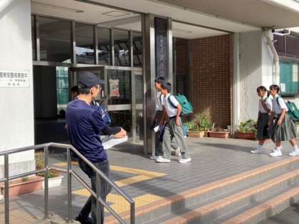 まだまだ暑いですが、正門前での元気な登校の様子です。