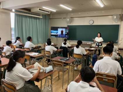 月曜日は全校集会ですが、暑さ対策のためTeamsを用いたオンラインで行なっています。
