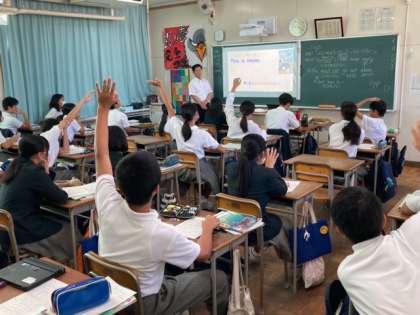 1組は英語、2組は技術の授業です。