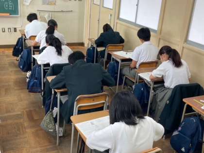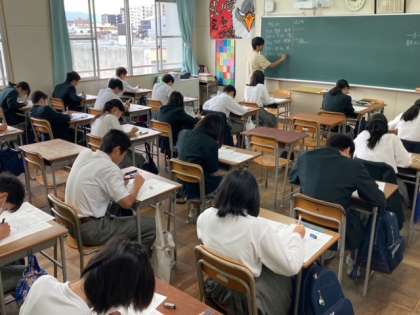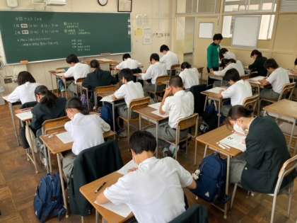 2年生の1時間目のテスト風景です。 理科に取り組んでいます。