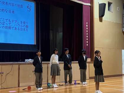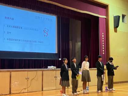 10月20日 国際クラブ発表会3 公開日 2023/10/20 更新日 2023/10/20 できごと 中国語クラブの発表です。 空竹の実演をしてくれました。 最後に中国語弁論大会に出場する生徒がみんなの前でスピーチを披露してくれました。 いいね(0)