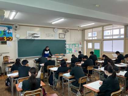 2時間目、3年では英語と国語のテスト返しをしていました。何がわかっていなかったか、再確認し、テスト直しをすることで、自分の弱点への対策になります。地道な努力こそが、成績upに繋がっていきます。