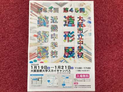 1月19日(金)〜21日(日)にあべのハルカス24階の大阪芸術大学スカイキャンパスにて、大阪市立中学校造形展と近畿中学校美術展が開催されます。