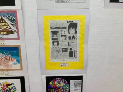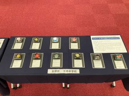 大池中学校からは、近畿中学校美術展に選定された作品と造形展には立体作品「和菓子」が展示されています。