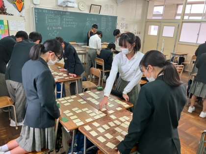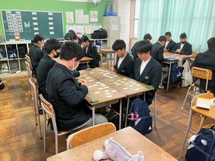1月18日 2年生授業風景 公開日 2024/01/18 更新日 2024/01/18 できごと 2年生は百人一首大会に向けて、練習をしていました。教室に行くと何人も「こんなに取ったよ!」と笑顔で教えてくれました。 いいね(0)