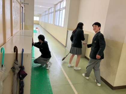 多目的室や音楽室前廊下の清掃をしてくれていました。きれいな環境は気持ちがいいですね。