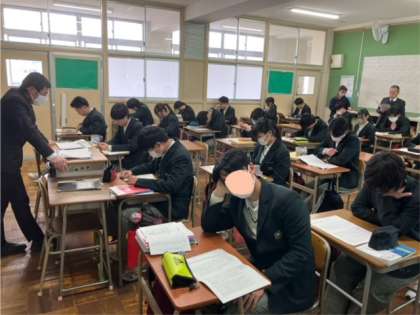 2月2日は、3年国語です。評論をまとめる時に有効な方法について考え、序論、本論、結論に分けていました。