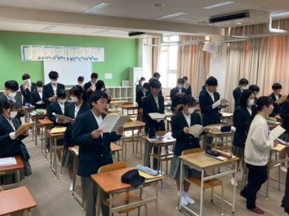 1組は音楽室にて近づく春に向けたコーラスを聞かせてくれました。