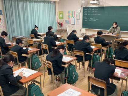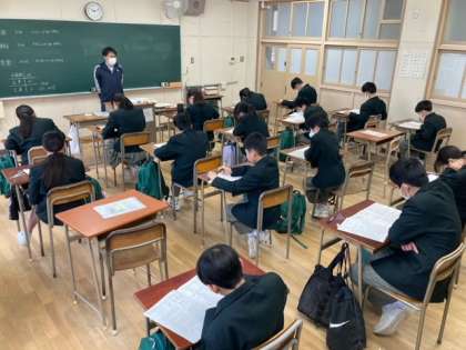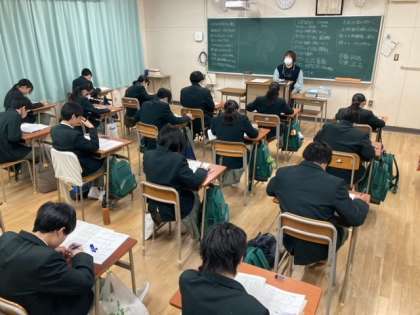学年末テスト2日目の1年生のテスト風景です。 2時間目の理科に取り組んでいます。