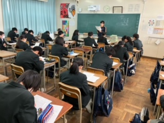 2年生の授業風景です。1組の教室では、数学のテスト返しで、解答の説明をされていました。うっかりミスは、正解できたかもしれないので次回はしなくなるように見直しが大事ですね。2組の教室では、ちょうど昨日の大阪マラソン2024のエピソードをお話されてるところでした。大阪マラソンでボランティア活動をしてくれた生徒がたくさんいます。そんなみなさんの応援のパワーもあって、マラソンランナーだった先生たちも頑張れたんですね。