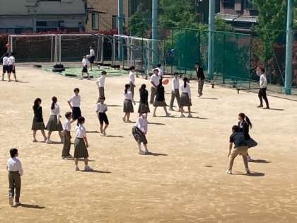 運動場では、ボール遊びなど生徒たちの楽しそうな声と笑顔が見られます。