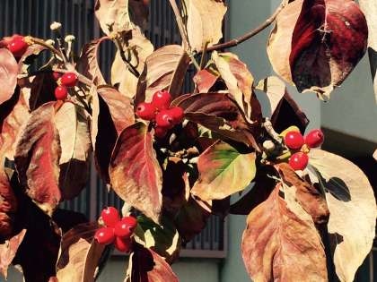 大池百景 公開日 2015/11/06 更新日 2015/11/06 お知らせ 季節が変わるのも早いもので、11月になると一気に冬の到来を体感するようになりました。 今度の日曜日、11月8日からは立冬の時期を迎えます。昼夜の寒暖の差が大きく、体調管理をしっかりとしなければいけません。 校内を歩いていると、秋の深まりを感じさせる景色に出会えます。校庭の生垣のサザンカが赤い花をつけはじめたり、抜けるような秋の空に色付いたサクラの葉が映えたり、正門の記念樹のハナミズキが真赤な実を付けていました。 いいね(0)