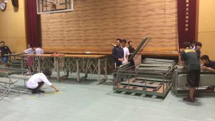 明日の合唱コンクールに備えて、バスケットボール部や先生方が会場の準備をしてくれました。ありがとう!
