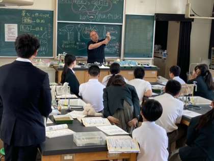2組の理科は、理科室で金属の酸化還元について実習しています。