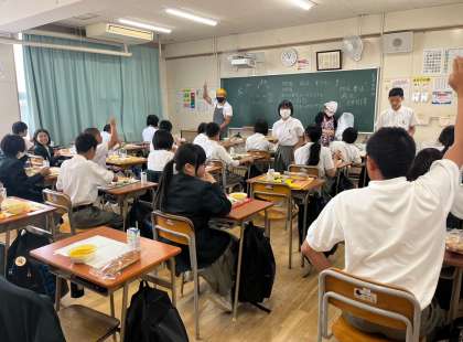 今日の給食はメロンが出ました。大人気で、各クラスでメロンの争奪戦が行われていました。美味しい給食に感謝ですね。しっかり食べて、午後からも頑張りましょう!