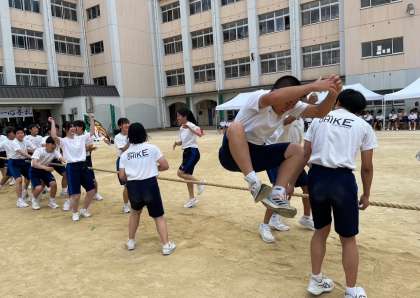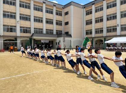 最後は3年生の綱引き。引く手にも3年分の力と思いがこもります。素晴らしい熱い熱い戦いでした。