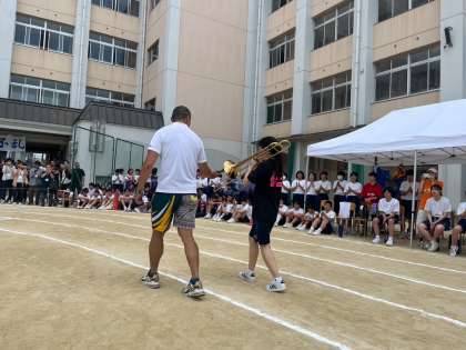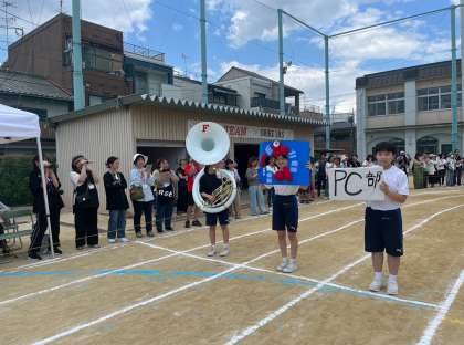 午後のスタートは部活対抗リレーです。それぞれの部活の活動をアピールしてくれています。