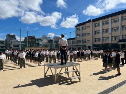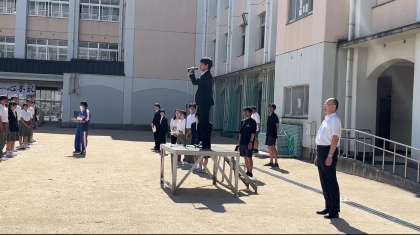 6月10日 全校集会の様子 公開日 2024/06/10 更新日 2024/06/10 できごと 金曜日に体育大会も終わり、今週もスタートしました。全校集会では、無事最後の日を迎えた教育実習生から全校生徒に向けて挨拶がされました。時間は止まることはなく、出会いと別れを繰り返します。それぞれの場所で、お互いの『今』を大切にして過ごしていきましょう! いいね(0)