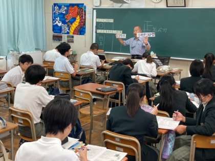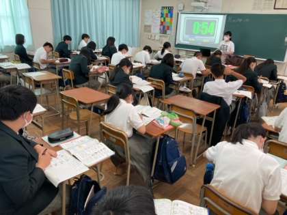 3年生の授業風景です。 1組は社会科、2組は家庭科を学習しています。