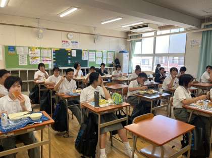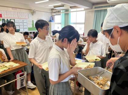 本日の給食メニューはみんなが大好き?唐揚げでした。自然と笑顔が溢れます。