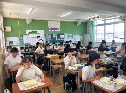 3年生もしっかり食べています。午後からの授業も頑張ります!!