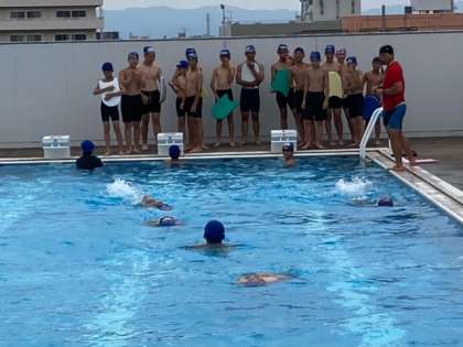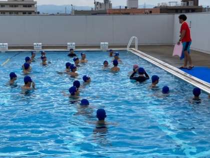 7月10日 2年生授業風景 公開日 2024/07/10 更新日 2024/07/10 お知らせ 2年生男子保健体育科の研究授業を行いました。 プールで水泳を行っています。 背泳ぎの基本を学ぶため、ビート板などで仰向きに浮かぶ練習をしました。 大阪市総合教育センターから教育指導員の先生に授業を参観いただきました。 いいね(0)